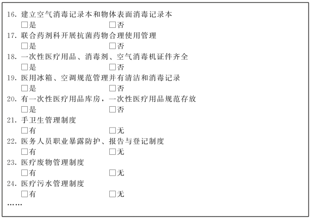 2.未设置住院床位的医疗机构医院感染管理质量检查表
