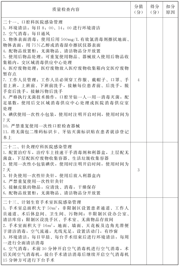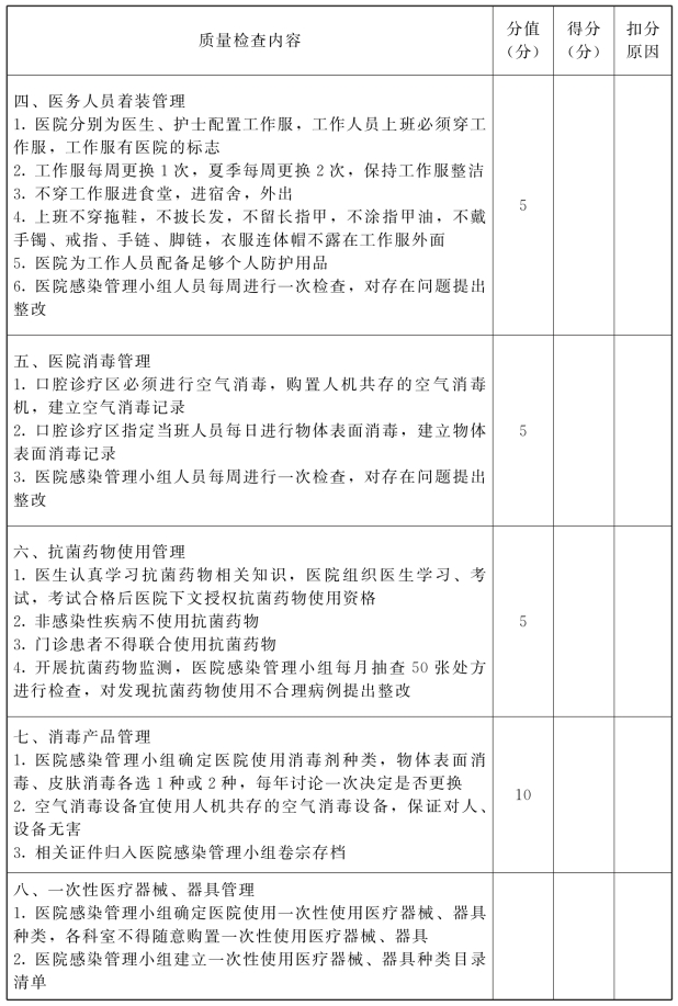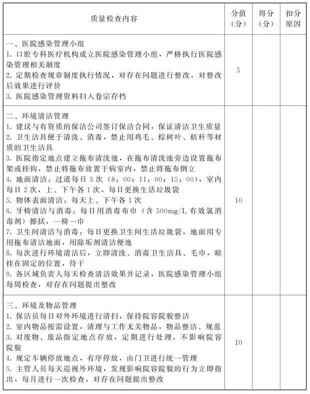 口腔医疗机构医院感染管理质量检查表的具体内容见表14-6。