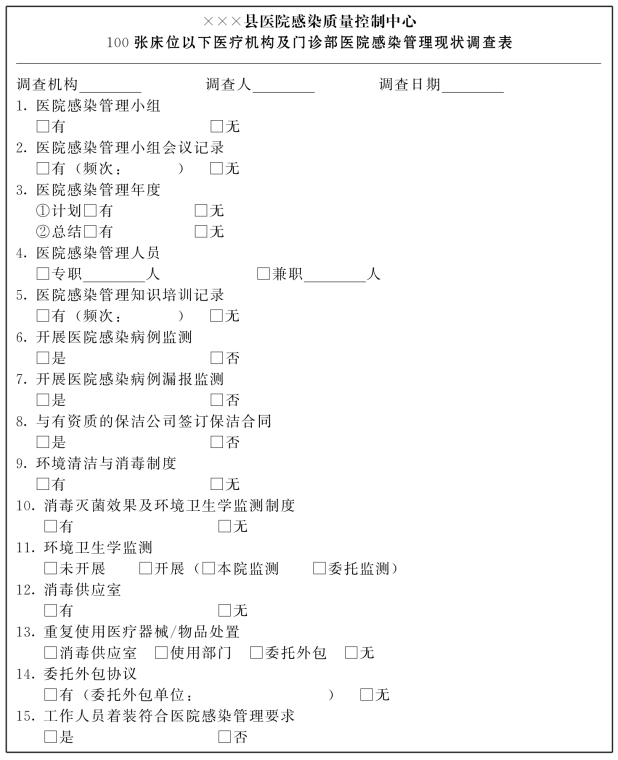 1.100张床位以下医疗机构及门诊部医院感染管理现状调查表