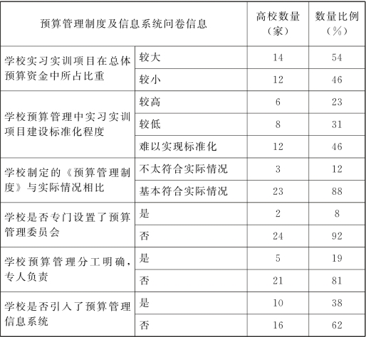表3-4 财经类应用型高校预算管理制度与信息系统问卷统计表