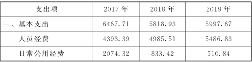 表4-2 A财经类应用型高校2017—2019年度支出情况表 单位:万元