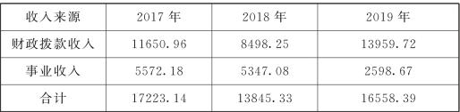 表4-1 A财经类应用型高校2017—2019年度收入情况表