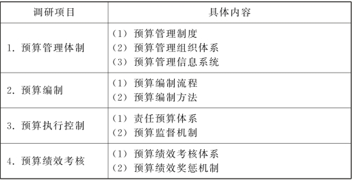 调研项目涵盖学校预算管理体制、预算编制、预算执行控制和预算绩效评价等四个方面,调研内容总结提炼如表5-2所示。