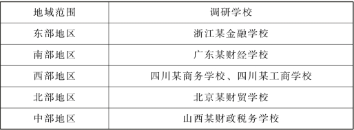 调研对象选择了近年来办学情况较好、国内知名度较高的财经类应用型高校,地域范围涵盖了东、南、西、北、中全国大部分地区。调研对象如表5-1所示。