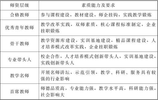 表6-3 师资层级素质能力及要求