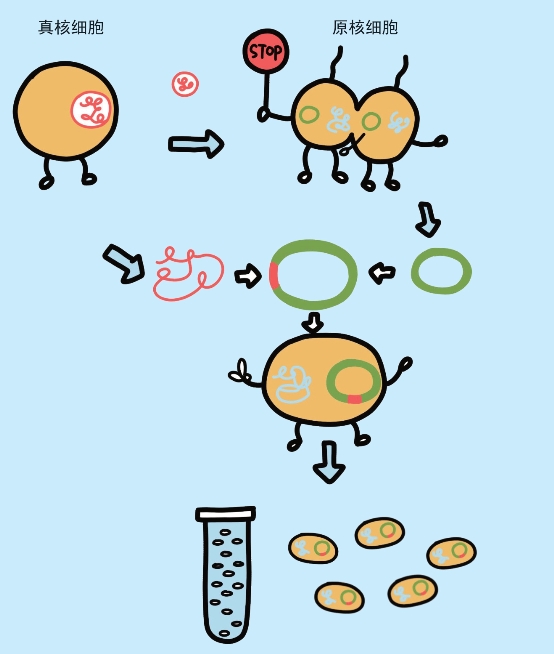 载体是一种比染色体小得多的DNA,它通常分为两大类:一类叫作质粒(Plasmid),因存在于细菌细胞质中,故得此名);另一类是噬菌体或病毒。