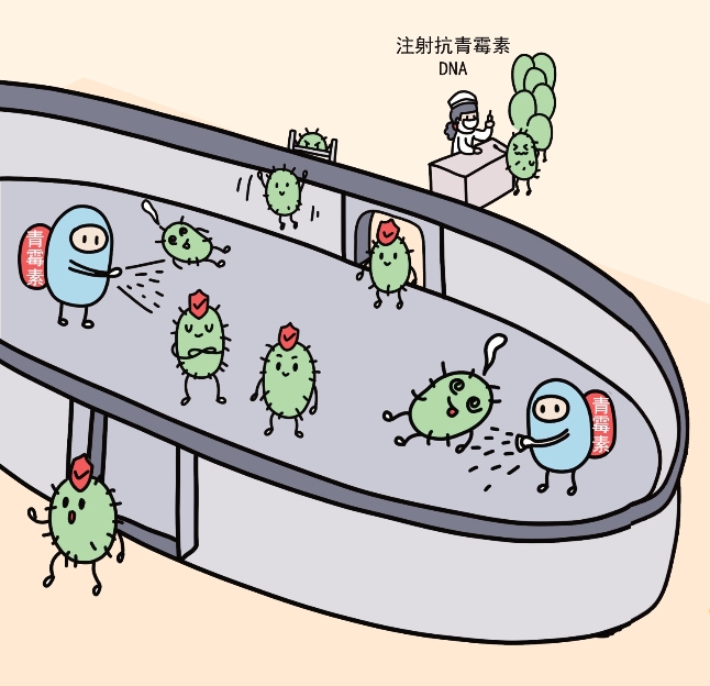 首先,利用和选择培养基。转化用的受体大多为细胞群体,它们在人工条件下生存和繁殖的营养物质称为培养基。我们可根据转化用的DNA所携带的标记,选择不同的培养基。例如,我们把抗青霉素的DNA引入不抗青霉素的大肠杆菌(受体细胞群体)中,在这个群体中一个细菌就是一个细胞。其中一些大肠杆菌接受了抗性标记的DNA,就产生了对青霉素的抗药性,它们就是我们寻找的转化体。为筛选出这些转化体,便可采用含有青霉素的培养基。把转化处理后的细菌群体加在培养基中培养,真正的转化体由于有了抗药性而能够生长繁殖,其余的大肠杆菌则被抑制或杀死。挑出生长的大肠杆菌,即得到了转化体。