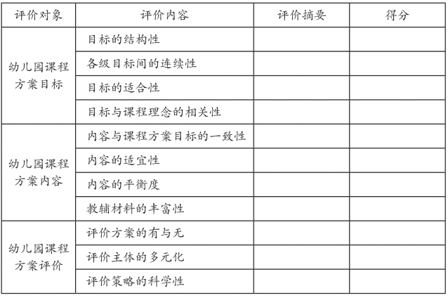 表2-3 幼儿园课程方案结构评价表[44]