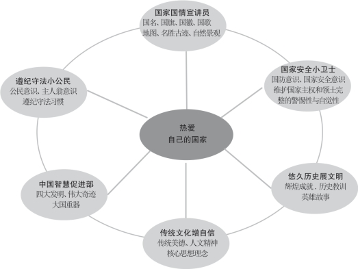 如图5-5 所示,节气园本课程以幼儿社会领域的核心经验“热爱自己的国家”为中心内容,对节气文化与当代生活中的相关课程内容加以统整,开展系列的活动。