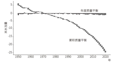 注:年度质量变化以米水当量(m w.e.)表示,相当于吨/平方米(1000 kg/m2)。