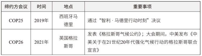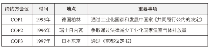 表1-5 《联合国气候变化框架公约》缔约方会议主要内容