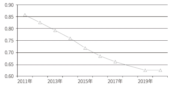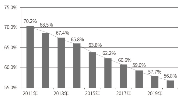 图1-21 2011—2020年中国煤炭消费量占能源消费总量比例
