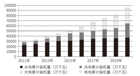 图1-19 2011—2020年中国非化石能源发电装机容量