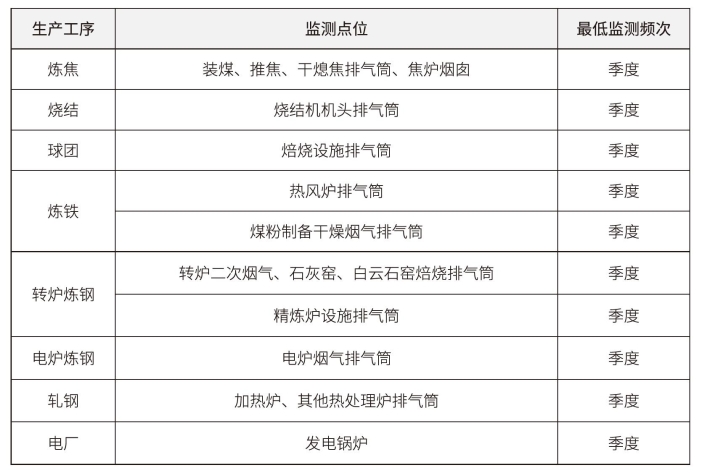 表4-7 钢铁行业建设项目二氧化碳监测计划一览表