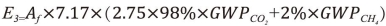 2%——火炬销毁过程CH4的不完全燃烧率;