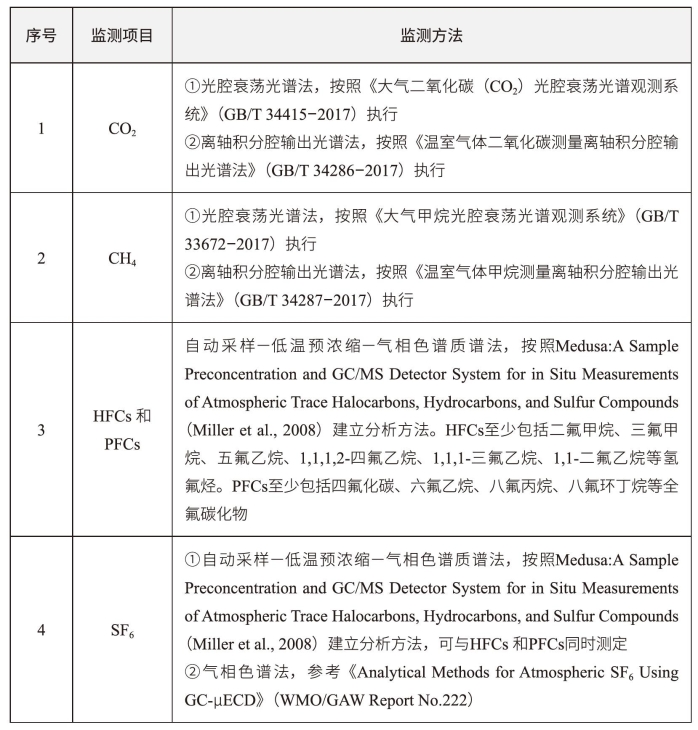 按照《区域大气温室气体及生态系统碳汇监测试点技术指南》要求,视具体情况选择以下方法开展监测。监测项目及监测方法见表5-8。