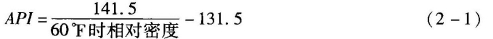 石油的相对密度,在我国和前苏联是指在105Pa下,20℃石油与4℃纯水的密度比值,用表示。欧美各国则是用105Pa下,60℉(15.55℃)石油与4℃纯水的密度之比,通常称之为API度。在国际石油贸易中常以API度为单位。API度与60℉石油相对密度的关系可用下式换算: