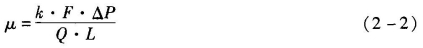 动力黏度又称绝对黏度。在国际计量单位SI制中,单位为帕斯卡·秒(Pa·s)。其定义为:流体通过长度(L)为1m,横截面积(F)为1m2,渗透率(k)为1m2的介质,当压差(Δp)为1Pa,流量(Q)为1m3/s时,流体的黏度(μ)为1Pa·s。其表达式为: