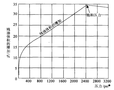 图2-12 在有气顶条件下,石油体积随压力增大而变化情况(据A.I.Levorsen,1954)