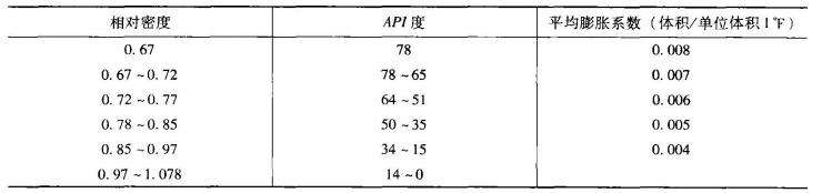 密度是单位体积物质的质量。密度单位一般用g/cm3。石油的密度与其本身的成分和体积变化相关。液体石油的体积,在常压下随温度升高而增大。温度每增加1℉,单位体积所增加的体积数称为膨胀系数。它不是一个固定的常数,而是随相对密度的减小而增大(表2-5)。压力对石油的体积也有影响,随压力增大体积将因被压缩而减小。压力每增加105Pa,单位体积被压缩的体积数称为压缩系数。压缩系数也不是一个常数。