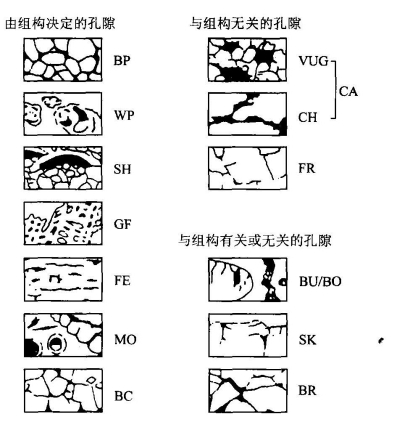 图3-12 碳酸盐岩孔隙分类(据Choquette和Pray,1970修改)
