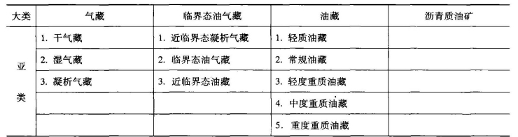 油气藏研究的目的之一就是搞清油气藏中流体类型、相态特征及分布,为制定合理的油气藏开发方案服务。油气相态是受油气藏的温压条件与烃源岩的成熟历史控制的,对油气藏中烃类相态的研究有利于总结油气分布规律。我国目前采用的烃类相态分类方案见表4-3。
