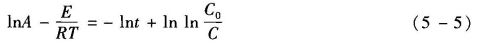 从(5-6)式可知,反应时间的对数(lnt)与反应温度的倒数(l/T)呈线性关系。
