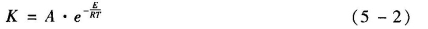 式中:K为温度T时的反应速率常数;A为频率因子即单位时间、单位容积内分子碰撞次数;E为活化能(J/mol);T为绝对温度;R为气体常数;e为自然对数的底。