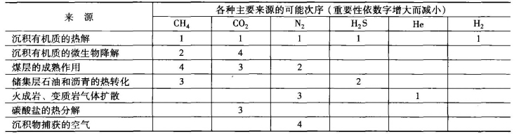 表5-4 天然气组成的来源
