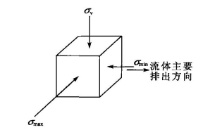 构造应力之所以是初次运移的动力,是因为烃源岩孔隙度和流体压力的变化,不仅可以由上覆岩石的负荷应力所产生,也可以由水平的构造应力所引起,而大多是两种应力叠加的结果。但当水平的构造应力大于垂直的负荷应力时,最大主应力则为水平方向,流体将沿最小主应力方向流动(图6-13)。水平的构造应力对岩石的作用也可以理解为侧向的压实,与负荷应力产生的垂向压实一样可以引起瞬时剩余压力和岩石的破裂,只是压力梯度和破裂的方向有所不同,当地层倾角不大时主要是沿烃源岩的水平方向进行。而泥质烃源岩水平方向的渗透率一般都大于垂向的渗透率,所以沿侧向的初次运移效率会更高。在构造应力作用下同样可以使岩石变得很致密而导致封闭,并产生流体的异常高压。随着构造应力的释放和积蓄,同样可以使初次运移呈幕式进行。显然地壳构造的活动期也是初次运移最活跃的时期。