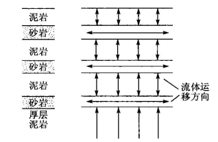 图6-8 砂泥岩互层流体运移主要方向示意图