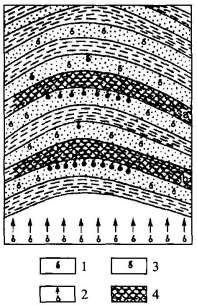 图6-23 褶曲地层中的上倾水流和下倾水流
