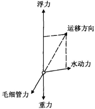 从物理角度讲,油气二次运移实际上是油气在含水介质中的机械渗流过程。石油与天然气只是密度不同而已。单位质量的石油质点在渗流过程中受重力、浮力、水动力和毛细管力4种力的作用(图6-27)。当地下储集层中的水处于流动状态时,油气受到水动力的作用。如第四章所述,推动单位质量石油质点运移的水动力值等于: