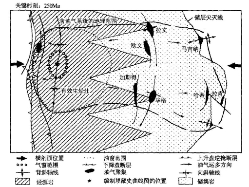 图8-16 含油气系统关键时刻平面图(据Magoon & Dow,1994)