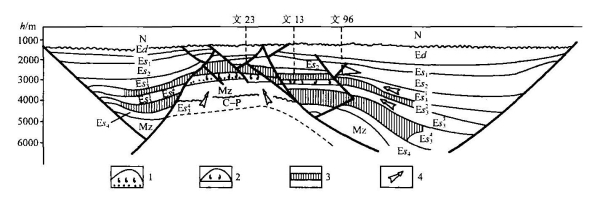 图8-33 东濮凹陷文留油气藏剖面图(据朱家蔚等,1983)