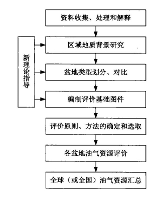 上述表明,国际层面和国家层面油气资源评价比较相近,均以弄清油气资源总量分布规律、剩余非探明资源状况和勘探技术可行性为主要目的。而石油公司层面油气资源评价则不同,其主要的目的不仅是确定油气资源状况和勘探技术可行性,而且特别关注油气资源的品质、勘探开发成本及经济可行性、分析经济效益,优选方案等。相应地,油气资源评价的总体思路及工作程序也有所不同。
