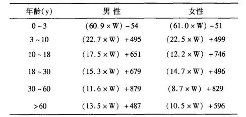 (式中W为体重,单位为千克 引自吴坤主编《营养与食品卫生学》)