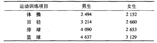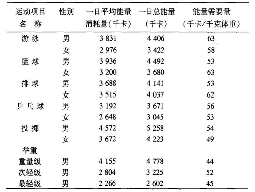 表2-5 体育专业学生不同运动项目一天能量消耗 (千卡/天)