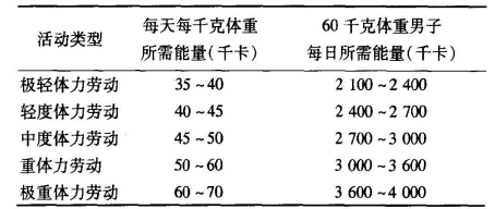 (4)重体力劳动:如非机械化农业劳动、半机械化搬运工作、炼钢和体育活动等。