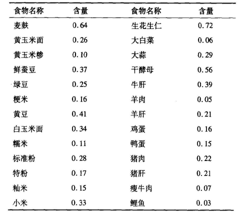表3-6 常见食物中维生素B1含量 (毫克/100克)