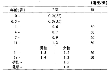 中国营养学会2000年制定的中国居民维生素B1参考摄入量(RNIS)和可耐受最高摄入量(UL)见表3-7。