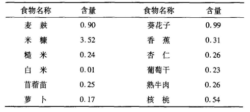 表3-9 常见食物中维生素B6含量 (毫克/100克)