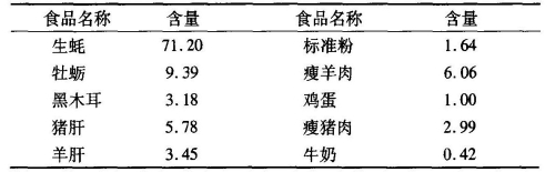 (二)锌的需要量与食物来源