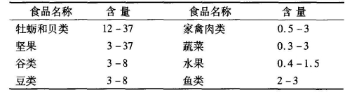 铜在食物中分布广泛,含铜较多的食物有:动物肝、肉类、海产食物、粗制谷物食品、荚豆以及核桃、板栗等坚果(见表4-5)。此外,应用铜炊具烹调食物也是机体铜的重要来源。