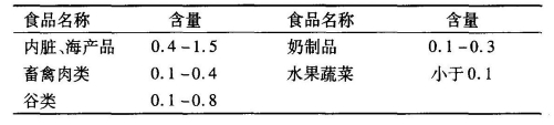 硒主要来源于海产品、肝、肾、瘦肉、谷类食品以及蔬菜等(见表4-6)。