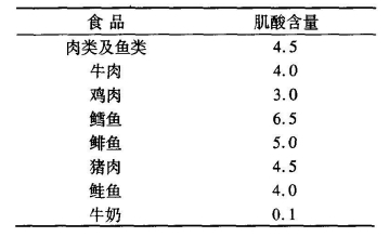 肌酸是一种天然的在肉类和鱼类食品中大量存在的物质(见表9-2),它可以促进肌肉的合成,增加机体瘦体重,降低脂肪含量。研究表明,肌酸可以增加肌纤维摄取肌肉收缩所必需的肌动蛋白和肌球蛋白,从而可以增加了机体肌肉从事体力活动的能力。