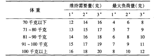 1*表示体力输出程度一:低强度训练,每星期2~3次,每次1小时