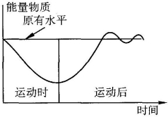 运动时引起体内磷酸肌酸、糖元、蛋白质、磷脂等的消耗,但经过合理的休息和食物补充,可恢复人体的活动能力。巴甫洛夫及其学生福里波特研究表明,恢复过程的强度取决于消耗过程的强度。在生理范围内,活动量越大,消耗过程越强烈,随之而来的恢复也就越明显。这种恢复过程,并不是简单的补偿锻炼的消耗,而是进行超量补偿。被消耗的能量物质,不仅能恢复到原来的水平,而且在一段时间内还会超过原来的水平,使人体获得更加旺盛的活力。这种现象称为“超量恢复”(图2-1)。现在对“超量恢复”的生理意义的认识仍在不断深化之中。实践证明,如果不进行身体锻炼,人体没有大的消耗,总是处于较低水平的同化与异化作用相对平衡的状态,机体就得不到增强。只有承受一定的运动负荷,才能刺激人体不断打破旧的平衡,在新的基础上建立新的平衡,也就是在平衡——不平衡——新的平衡的矛盾转化过程中,增加人体内能量的储备,改善机体的调节能力和各器官系统的机能和结构,产生了对运动的适应,从而使人体的机能和素质得以不断发展,健康水平得以提高。