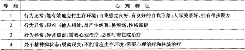 表3-11 个体心理健康状况评价等级
