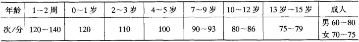 表3-8 安静时脉搏正常值